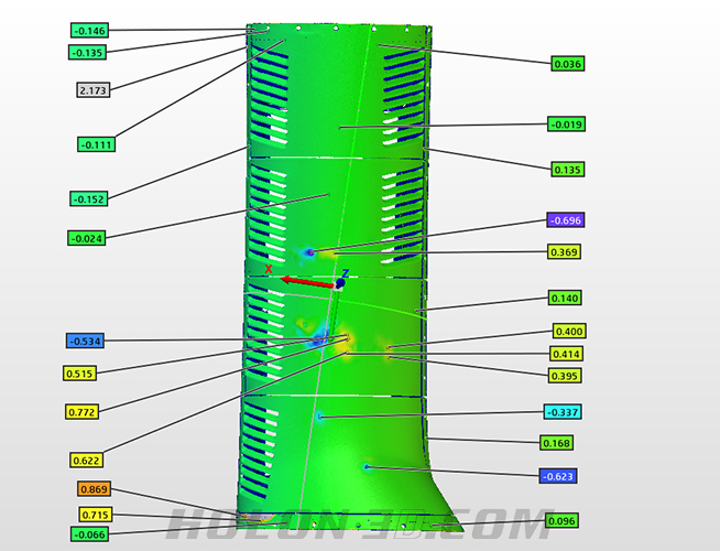 In response to the problems faced by customers, Hualang 3D engineers proposed a solution: use Model 37 handheld 3D scanner, which adopts the latest handheld design, is lightweight and easy to carry; 22 laser lines + 1 beam for deep hole scanning + 14 beams for fine scanning There are a total of 37 laser lines, and the three scanning modes can flexibly scan the variable cross-section of the aircraft air hood, and can accurately scan the uneven surface data of the hood and the data of each hole position; the data acquisition accuracy is high, and the data can be later inspected. analyze.