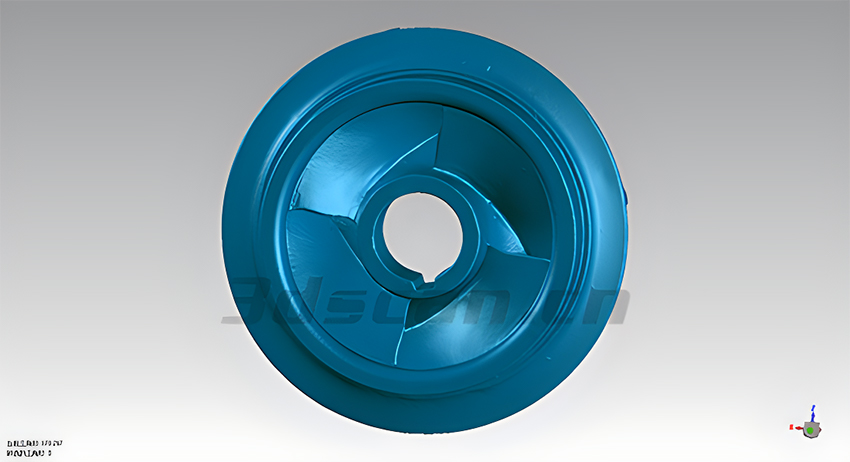 1. The water pump impeller is small in size and has dark black and metallic reflective surfaces in parts of its surface, making it more difficult to scan. The product is prone to deformation during the production process, so the quality control of the water pump impeller is particularly important, and customers require very high precision.