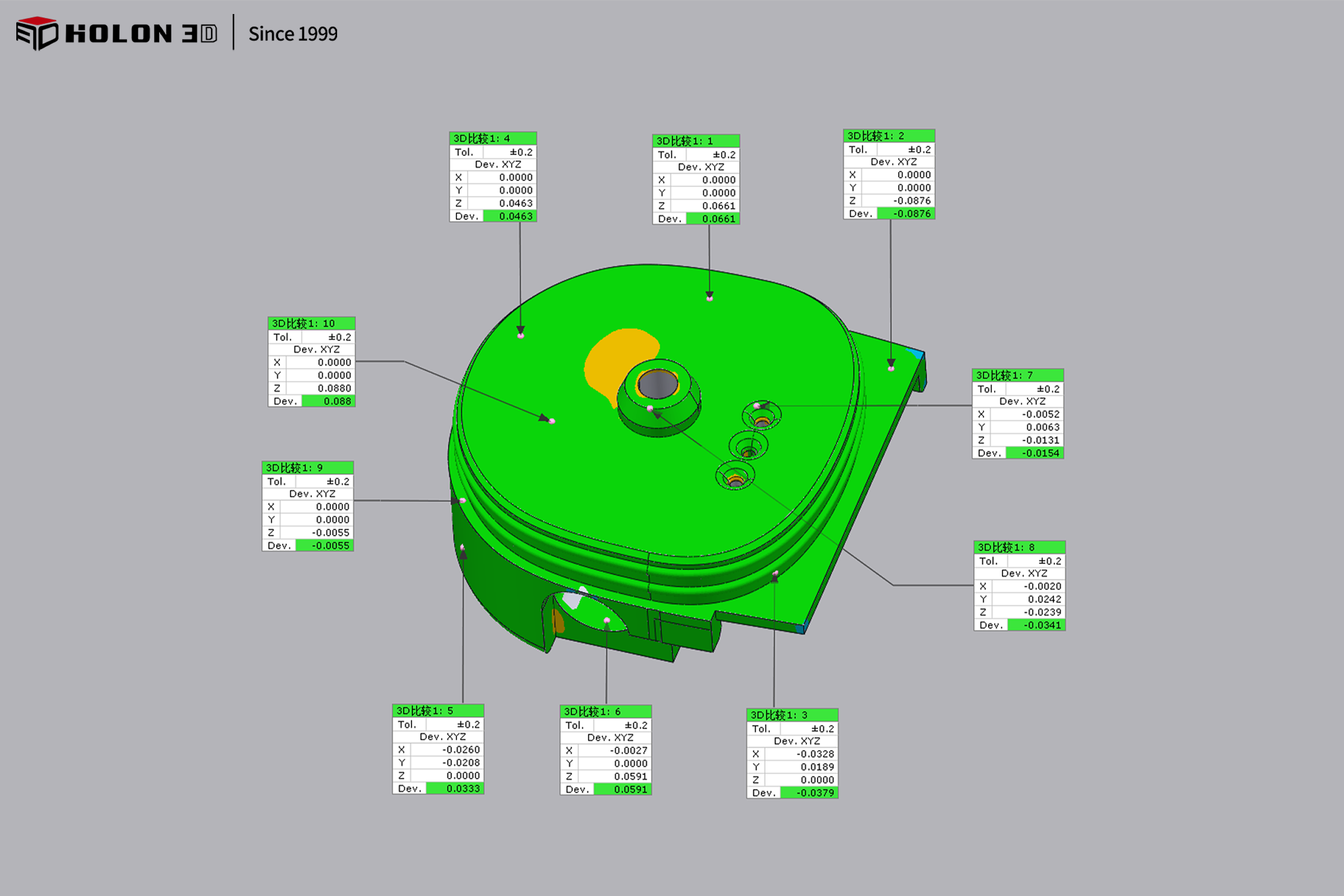 采用 HOLON 3D smart 49 手持式三維掃描儀,可高效精準(zhǔn)地完成橡膠支架底座的三維數(shù)據(jù)采集。該掃描儀具備全藍激光,通過調(diào)節(jié)激光亮度能有效應(yīng)對黑色表面的光線吸收問題,清晰捕捉安裝孔位、凹槽弧度、凸起紋路等細(xì)節(jié)特征,精準(zhǔn)還原底座的真實形態(tài),滿足與加工模型比對的精度要求;高速掃描能力大幅縮短數(shù)據(jù)采集時間,快速獲取全表面信息,適配客戶對效率的高要求;非接觸式掃描方式避免了對彈性橡膠材質(zhì)的接觸擠壓,防止部件形變,保障數(shù)據(jù)真實性;手持操作靈活便捷,可輕松覆蓋底座的復(fù)雜結(jié)構(gòu),確保細(xì)節(jié)特征無遺漏。掃描后生成的三維數(shù)據(jù)完整、精準(zhǔn),完全符合客戶進行三維比較、檢測誤差的要求,為橡膠支架底座的質(zhì)量管控與生產(chǎn)工藝優(yōu)化提供了可靠的數(shù)字化基礎(chǔ)。