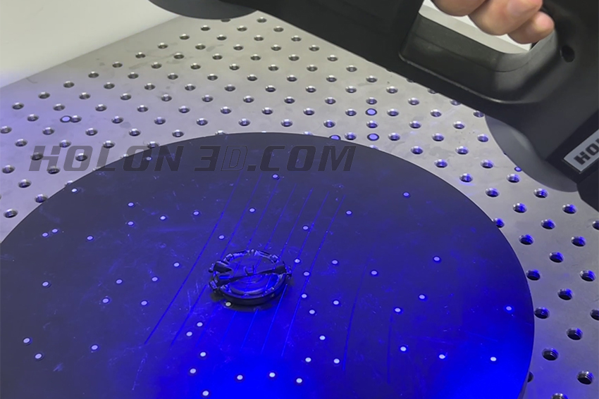 工件整體體積較小,直徑僅4cm,表面呈不規(guī)則狀,細節(jié)處較多,表面呈黑色,根據客戶需求,掃描精度高,數據完整,使用傳統(tǒng)的掃描方式,很難做到數據完整獲取。