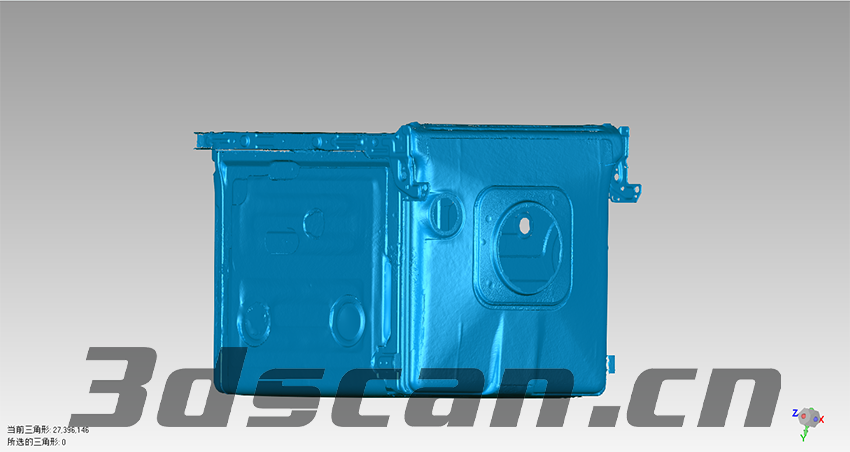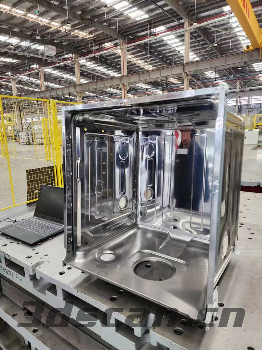 某知名廠家想借助三維掃描來進行三維掃描和逆向建模,工件屬于高反光且內部形狀凹凸不平,凹槽各異且孔位較多,客戶需要對工件孔位進行精確測量,給傳統(tǒng)的測量工作帶來大難度。采用傳統(tǒng)測量方法十分繁瑣、耗時,不能滿足客戶需求,客戶要求測量速度快、精度高且不能對工件做任何處理,實現(xiàn)自動化三維測量,使得很多同行望而止步。