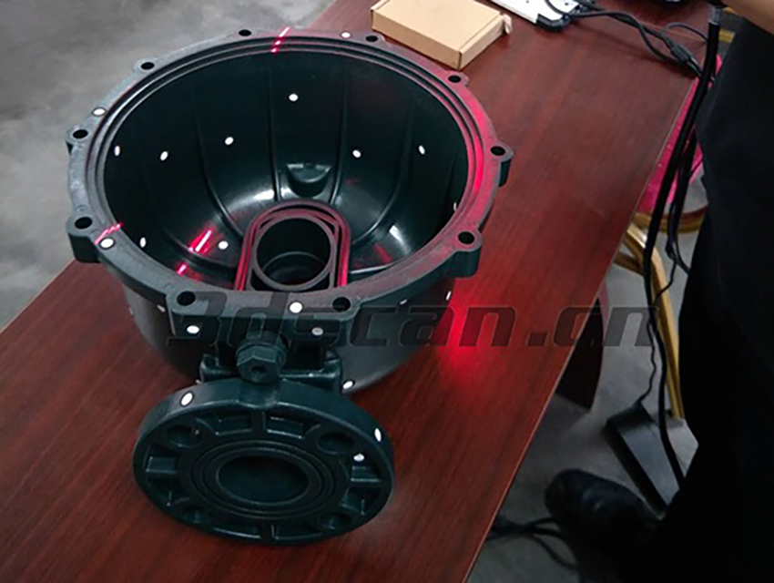 根據(jù)客戶面臨的問題我司華朗三維給出切實可行的掃描方案:使用手持三維掃描儀VX700快速獲取污水處理設備泵殼的三維數(shù)據(jù),不僅掃描精度高、速度快同時也滿足客戶要求不能噴涂顯像劑,掃描結(jié)果客戶非常滿意。