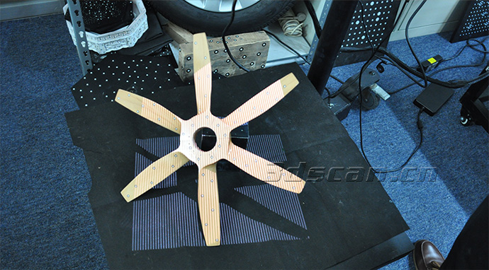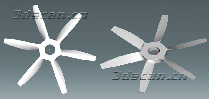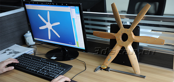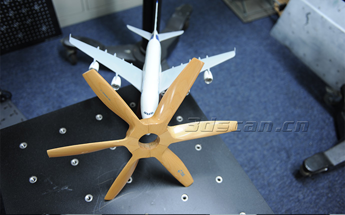 某高端玩具飛機設(shè)計公司為設(shè)計飛機螺旋槳模型,要考慮到其后期飛行速度與發(fā)動機傳出來的功率,設(shè)計過程中要考慮直徑、槳葉數(shù)目、實度、槳葉角、螺距等因素,由于人員設(shè)計時間較長,該企業(yè)希望使用三維掃描儀掃描飛機螺旋槳的三維數(shù)據(jù),進行逆向設(shè)計,可加快工作效率。