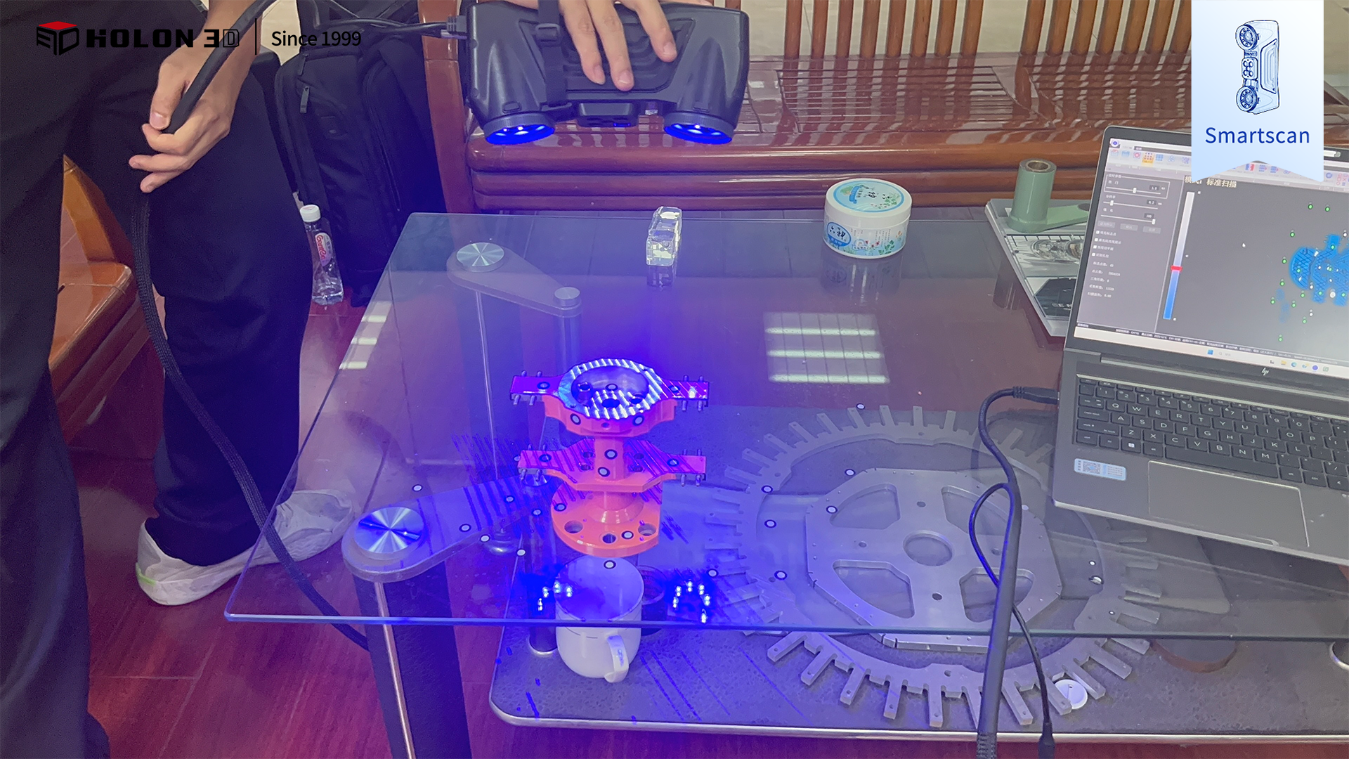 機(jī)械裝置組件是各類工業(yè)設(shè)備的核心組成部分,其裝配精度與結(jié)構(gòu)完整性直接決定設(shè)備的運(yùn)行穩(wěn)定性和使用壽命??蛻粜鑼?duì)該機(jī)械裝置組件進(jìn)行三維掃描,獲取高精度、完整的三維數(shù)據(jù),通過與原始模型比對(duì)生成三維檢測色譜圖,借助色譜圖直觀量化誤差分布,以此科學(xué)判斷組件是否合格。由于客戶對(duì)掃描精度和數(shù)據(jù)完整性要求極高,且需要適配不同檢測場景,傳統(tǒng)測量方式難以滿足需求,因此選擇 HOLON3D Smart 49 手持式全藍(lán)激光工業(yè)級(jí)三維掃描儀,為機(jī)械裝置組件的精準(zhǔn)質(zhì)量檢測提供高效可靠的數(shù)字化支撐。