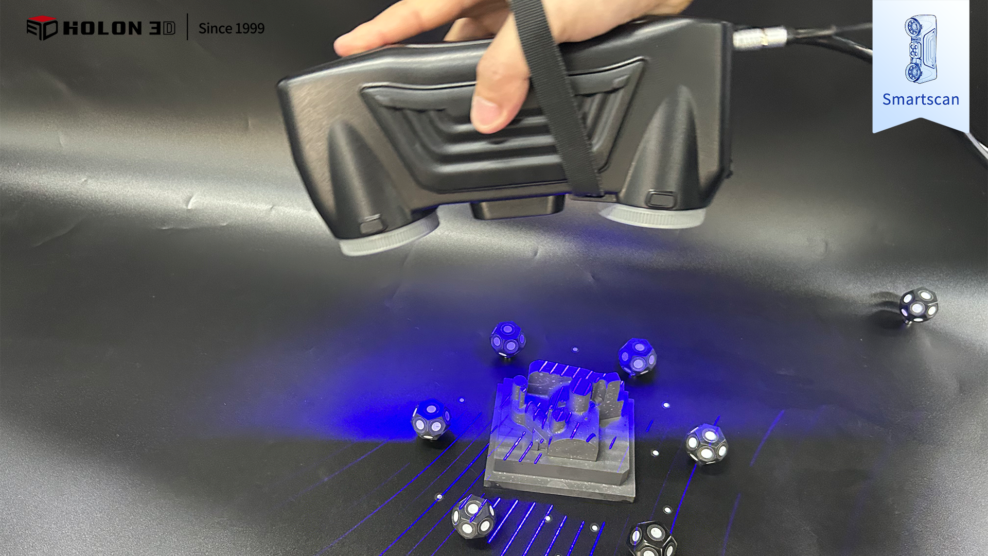 石墨材質(zhì)模具胚體是精密成型加工的核心工裝基材,其外形輪廓、型腔結(jié)構(gòu)精度直接決定后續(xù)模具加工質(zhì)量??蛻粜柰ㄟ^(guò)三維掃描獲取胚體高精度完整數(shù)據(jù),與原始模型比對(duì)生成三維檢測(cè)色譜圖,量化誤差以判斷加工是否合格。因客戶對(duì)掃描精度、細(xì)節(jié)還原度要求嚴(yán)苛,傳統(tǒng)測(cè)量方式難以滿足,故選擇 HOLON3D Smart 49 手持式全藍(lán)激光工業(yè)級(jí)三維掃描儀提供數(shù)字化檢測(cè)方案。