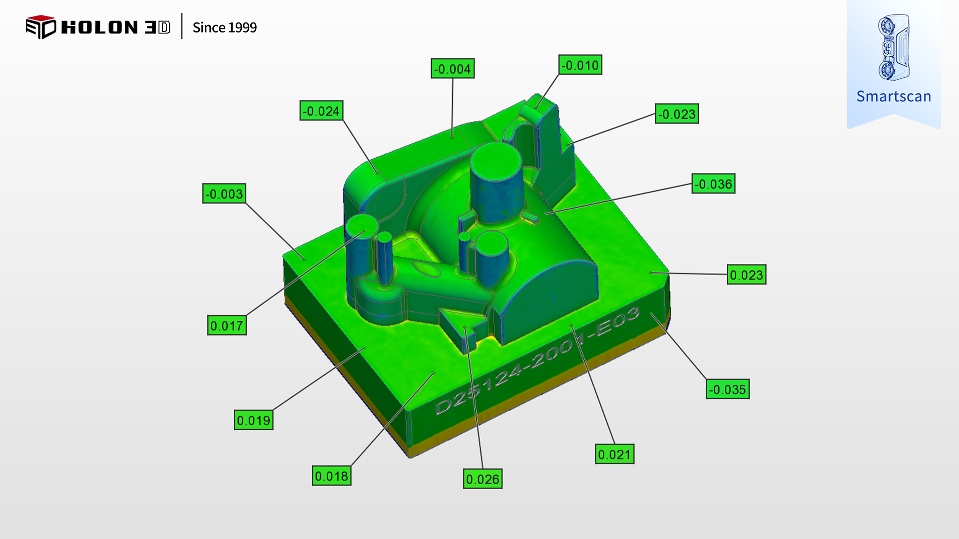 采用 HOLON3D Smart 49 掃描儀可針對(duì)性破解難題,其具備工業(yè)計(jì)量級(jí)精度,搭配全藍(lán)激光技術(shù),無(wú)需特殊預(yù)處理即可適配石墨吸光材質(zhì),精準(zhǔn)捕捉胚體輪廓、型腔細(xì)節(jié)等關(guān)鍵數(shù)據(jù);搭載四種掃描模式,可根據(jù)胚體整體輪廓、型腔內(nèi)部等不同特征靈活切換,配合手持設(shè)計(jì)自由調(diào)整角度,實(shí)現(xiàn)全區(qū)域無(wú)死角掃描;高速無(wú)接觸測(cè)量避免石墨材質(zhì)破損,不受場(chǎng)景約束,僅需粘貼少量標(biāo)志點(diǎn)即可穩(wěn)定輸出高質(zhì)量數(shù)據(jù),掃描數(shù)據(jù)與原始模型比對(duì)生成清晰色譜圖,準(zhǔn)確量化誤差,科學(xué)判定合格性,完全契合客戶需求,為胚體質(zhì)量管控與后續(xù)加工優(yōu)化提供可靠支撐。