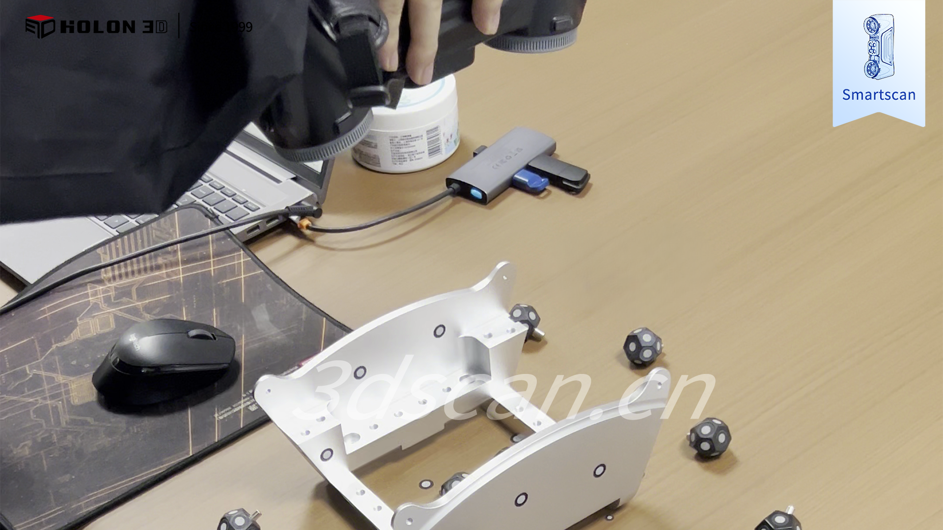 鋁鑄件憑借輕量化、高強(qiáng)度特性,廣泛應(yīng)用于各類機(jī)械結(jié)構(gòu)中,其尺寸精度與結(jié)構(gòu)完整性直接決定裝配適配性與使用可靠性??蛻粜柰ㄟ^三維掃描獲取鋁鑄件高精度完整數(shù)據(jù),與原始模型比對生成三維檢測色譜圖,量化工件誤差以判定質(zhì)量合格性。因客戶對掃描精度、細(xì)節(jié)還原度及數(shù)據(jù)完整性要求嚴(yán)苛,傳統(tǒng)測量方式難以滿足,故選用HOLON3D Smart 49手持式全藍(lán)激光工業(yè)級三維掃描儀,提供高效精準(zhǔn)的數(shù)字化檢測方案。