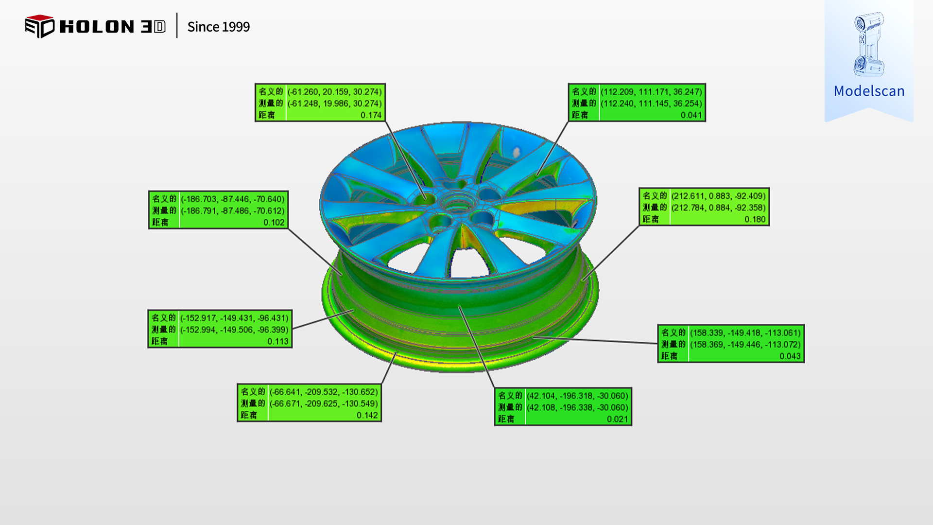 采用 HOLON3D Model 49 手持式全藍(lán)激光工業(yè)級(jí)三維掃描儀,可針對(duì)性破解汽車輪轂檢測(cè)的核心難題。該掃描儀具備工業(yè)計(jì)量級(jí)精度,實(shí)測(cè)精度達(dá) 0.02mm,最高可達(dá) 0.01mm,憑借全藍(lán)激光技術(shù)的高穿透性與識(shí)別力,無(wú)需依賴反光輔助,即可精準(zhǔn)捕捉輪轂的輪輞直徑、輻條厚度、安裝孔位尺寸、曲面弧度及邊緣輪廓等關(guān)鍵細(xì)節(jié),甚至可識(shí)別微米級(jí)誤差,獲取全表面高精度三維數(shù)據(jù),為生成精準(zhǔn)三維檢測(cè)色譜圖奠定堅(jiān)實(shí)基礎(chǔ),確保誤差量化無(wú)偏差;手持設(shè)計(jì)靈活便捷,不受輪轂環(huán)形結(jié)構(gòu)與隱蔽區(qū)域限制,可自由圍繞輪轂調(diào)整掃描角度,輕松深入輪輞內(nèi)壁、輻條間隙等不易觸及的部位,保障數(shù)據(jù)完整性,讓色譜圖全面呈現(xiàn)整體誤差分布;高速掃描能力大幅縮短復(fù)雜輪轂的數(shù)據(jù)采集時(shí)間,配合無(wú)接觸式測(cè)量方式,既避免了刮傷表面工藝與受力變形的風(fēng)險(xiǎn),又能快速獲取可靠數(shù)據(jù),高效支撐合格性判定;掃描儀適應(yīng)性強(qiáng),不受場(chǎng)景約束,在車間生產(chǎn)線、倉(cāng)儲(chǔ)質(zhì)檢區(qū)等復(fù)雜環(huán)境下無(wú)需復(fù)雜前期準(zhǔn)備(如表面噴粉、貼標(biāo)記點(diǎn)),即可穩(wěn)定輸出高質(zhì)量數(shù)據(jù)。掃描后生成的三維數(shù)據(jù)精準(zhǔn)、完整,與原始模型比對(duì)可清晰生成三維檢測(cè)色譜圖,能準(zhǔn)確量化輪輞圓度、輻條對(duì)稱度等關(guān)鍵指標(biāo)的誤差,科學(xué)判斷輪轂合格性,完全符合客戶對(duì)高精度與完整性的嚴(yán)苛需求,為汽車輪轂的質(zhì)量管控、工藝優(yōu)化及批量生產(chǎn)提供了可靠的數(shù)字化保障。
