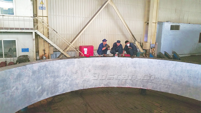 直徑約10米,高2米超大型鍛造件掃描現(xiàn)場(chǎng)